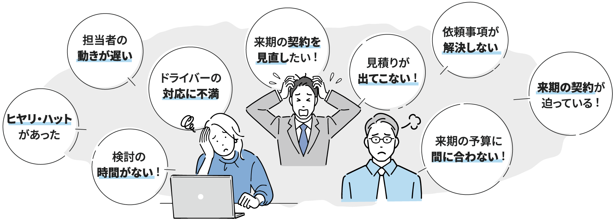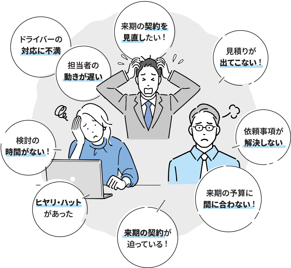 派遣は、運転業務に対する労務提供となることから、ドライバーが休んだ場合の代務や事故対応はお客様がすることとなります。