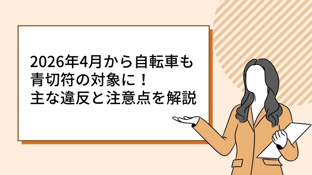 2026年4月から自転車も青切符の対象に!主な違反と注意点を解説2026年4月1日から、自転車の交通ルールに関する取り締まりが大きく変わります。これまでは注意や指導で終わることが多かった違反でも、反則金が科されるようになるのです。