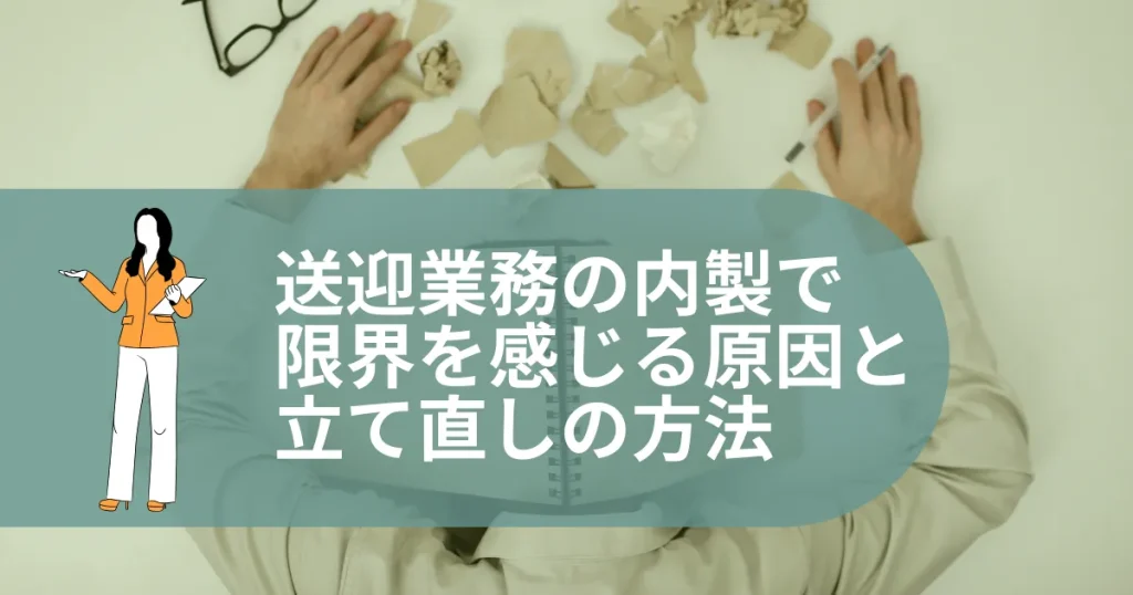 送迎業務の内製で限界を感じる原因とは?立て直しのための方法も解説送迎業務を自社で運営している組織では、人員不足や管理負担の増加により、内製体制の維持が困難になるケースが少なくありません。限界が近づいているにもかかわらず、明確な判断基準がないまま無理な運営を続けると、安全性の低下や利用者満足度の悪化を招く恐れがあります。