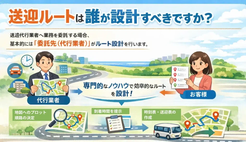 送迎業務を代行業者へ委託する場合、ルート設計は基本的に「委託先(代行業者)」が担います。